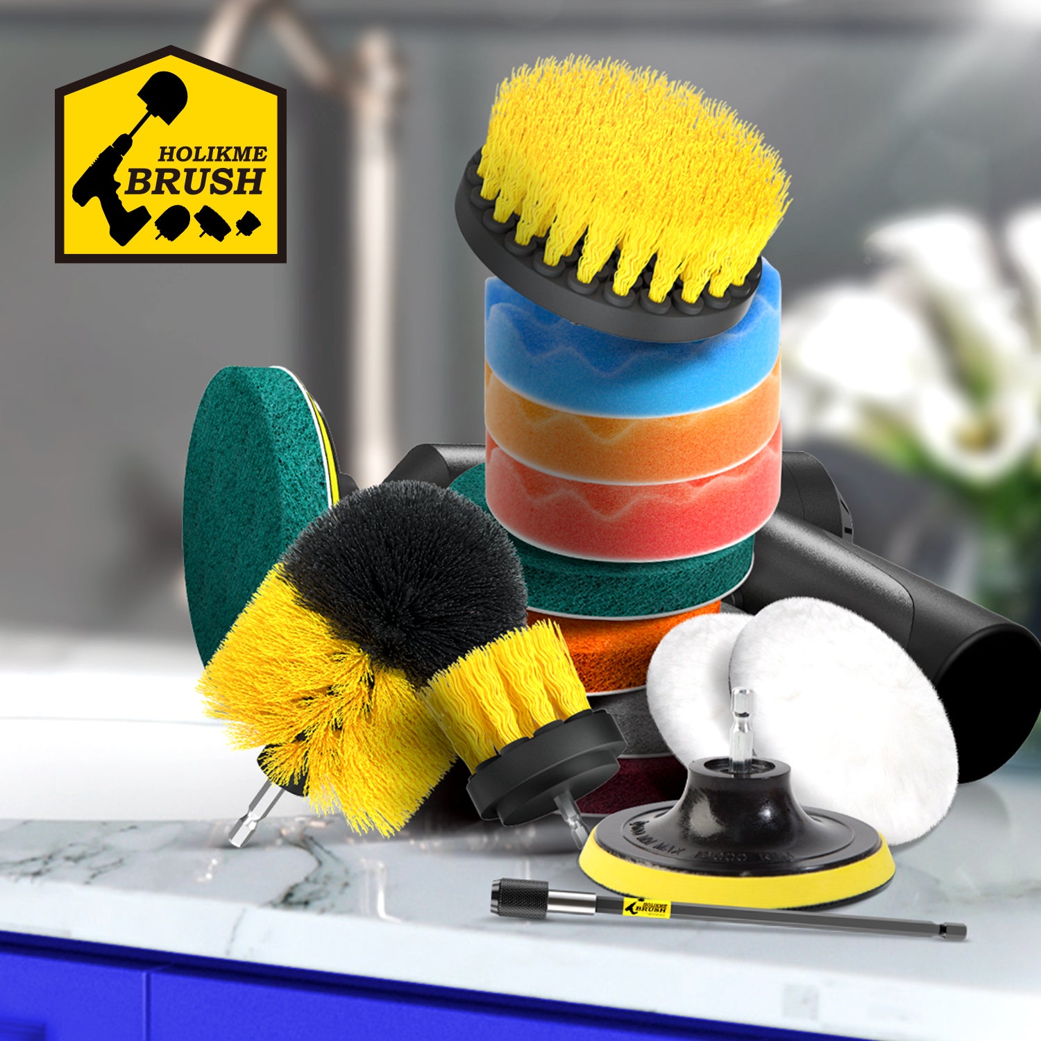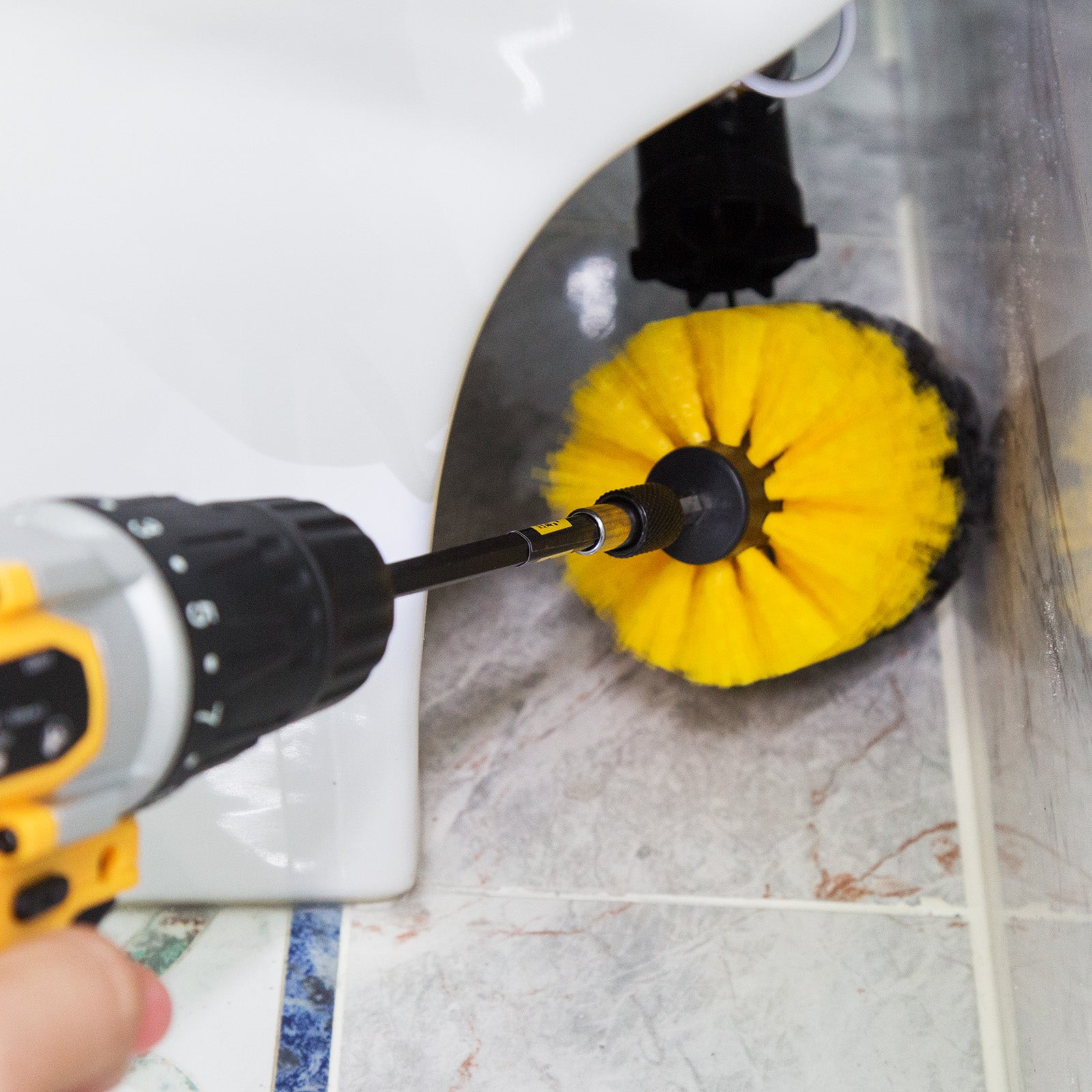 Holikme 4Pack Drill Brush Power Scrubber Cleaning Brush Extended Long Attachment Set All Purpose Drill Scrub Brushes Kit for Grout, Floor, Tub, Shower, Tile, Bathroom and Kitchen Surface,Yellow