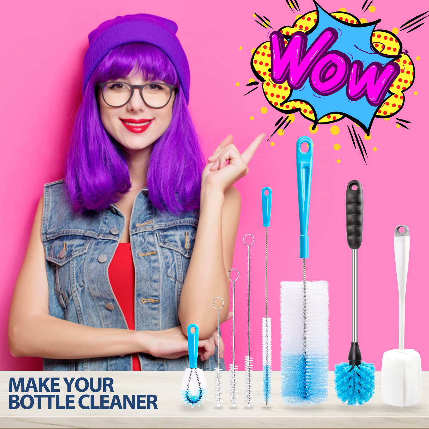 - 🔶8 Pack Bottle Cleaning Brushes, multiple uses, including 15" long handle beer bottle brush, 14" sports water bottle brush, 10" multifunction sponge brush, 4.3" spout cleaning brush, 7.9-12.5" straw brushes. You can hang them on hook for drying and storage.